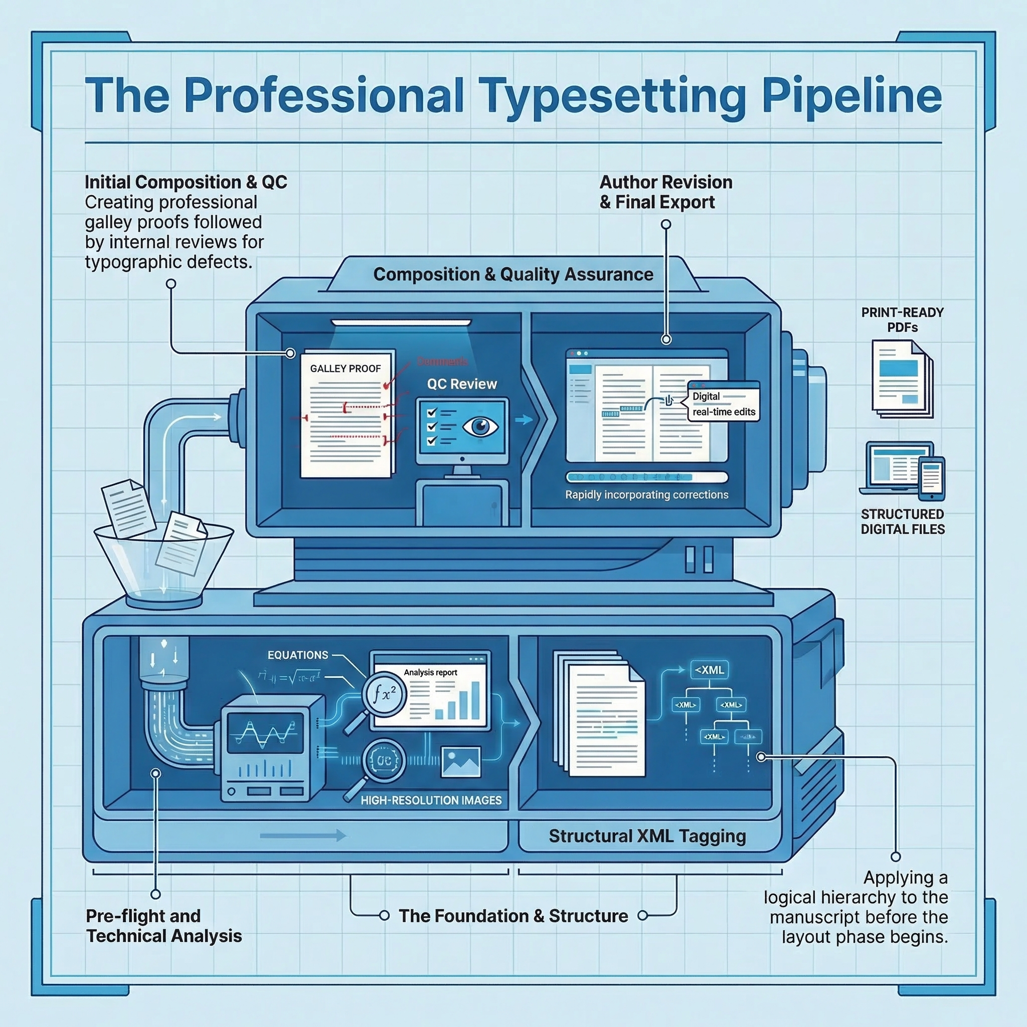 We follow a robust, multi-stage journals typesetting services workflow to ensure total accuracy and high-speed delivery for all our clients.